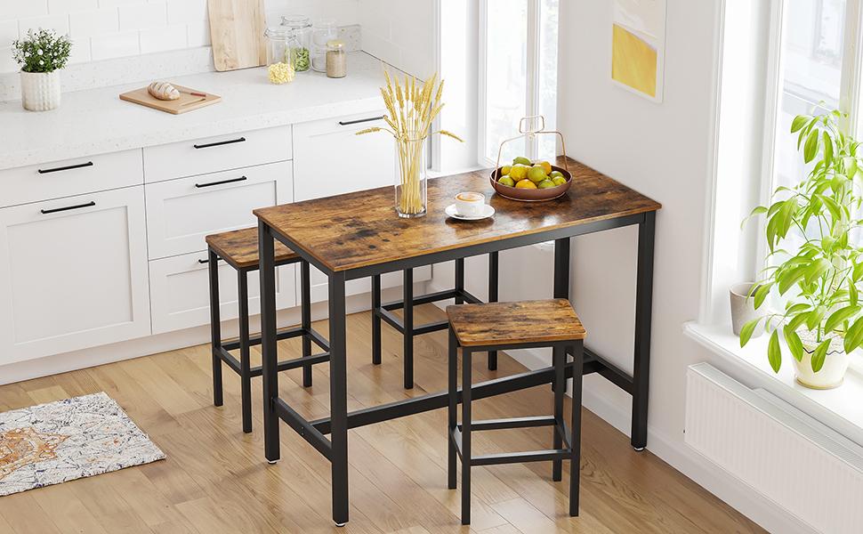 IDEAALNE SOBIVUS: Kaks baaritooli mõõtmetega 40 x 30 x 65 cm sobivad ideaalselt kõigi standardsuuruses baarilettide alla, muutes komplekti äärmiselt ruumisäästlikuks.
