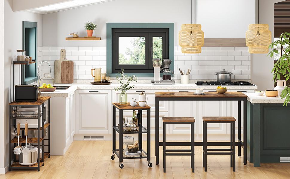 2-ne baaripukkide komplekt 40 x 30 x 65 cm, kööki ja söögituppa, industriaalstiil, vintage pruun/must