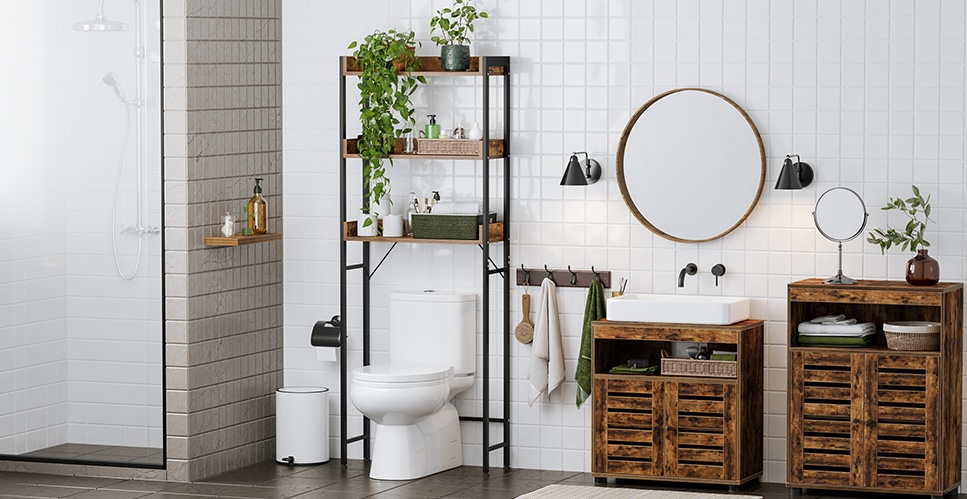- VÕLUV: Tualettide kohal olev ala on alati nii tühi. Kata see selle tualett-riiuliga ja maksimeeri oma vannitoas hoiuruumi! Soe vintage-toon ja must raam annavad teie tualetile ka võluvalt kutsuva ilme.