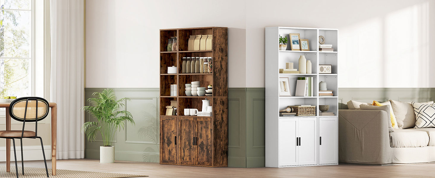 6-tasandiline kõrge riiul, püstine riiul uksega, avatud riiul, 24 x 31,8 x 175 cm, elutuppa, kodukontorisse, söögituppa, vintage-pruun