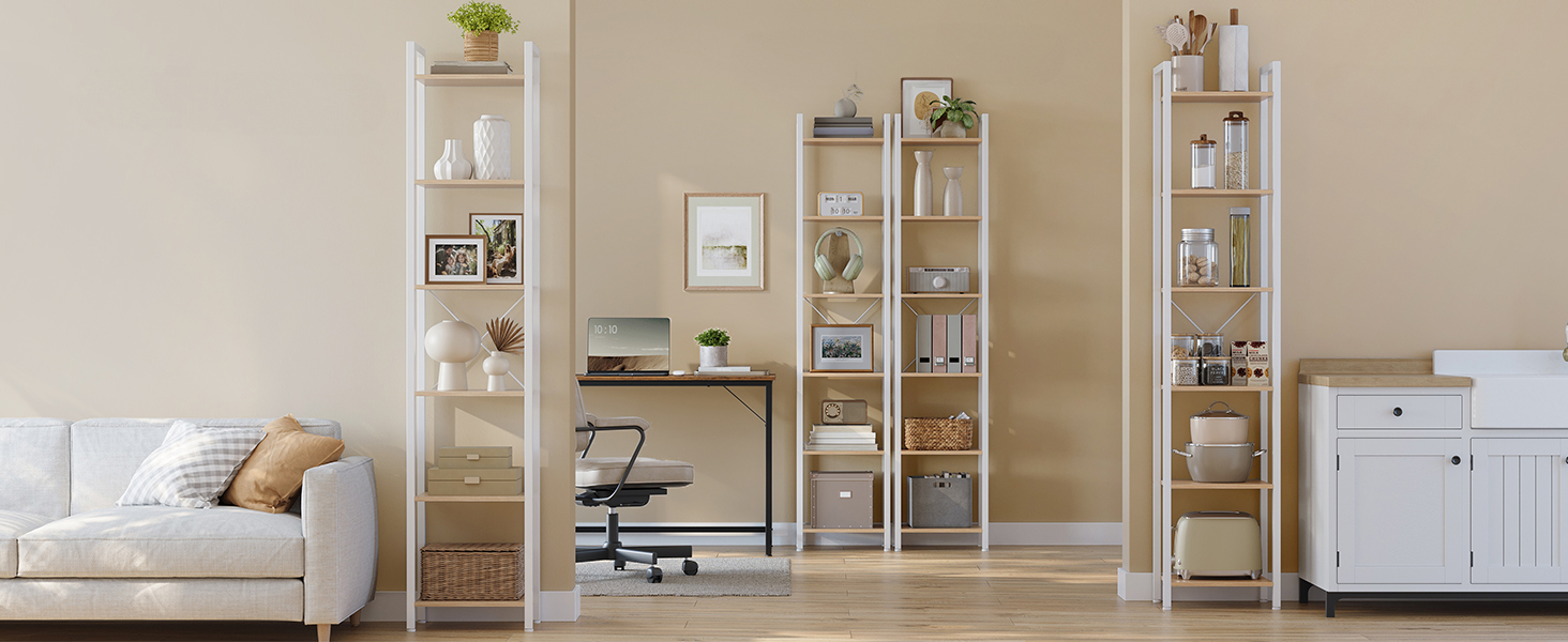 Ruumisäästlik disain: Mõõtudega 30 x 40 x 186 cm võtab see kõrge raamaturiiul vähe põrandapinda, kuid pakub 6 riiulit, mis võimaldab piiratud ruumi täielikult ära kasutada.