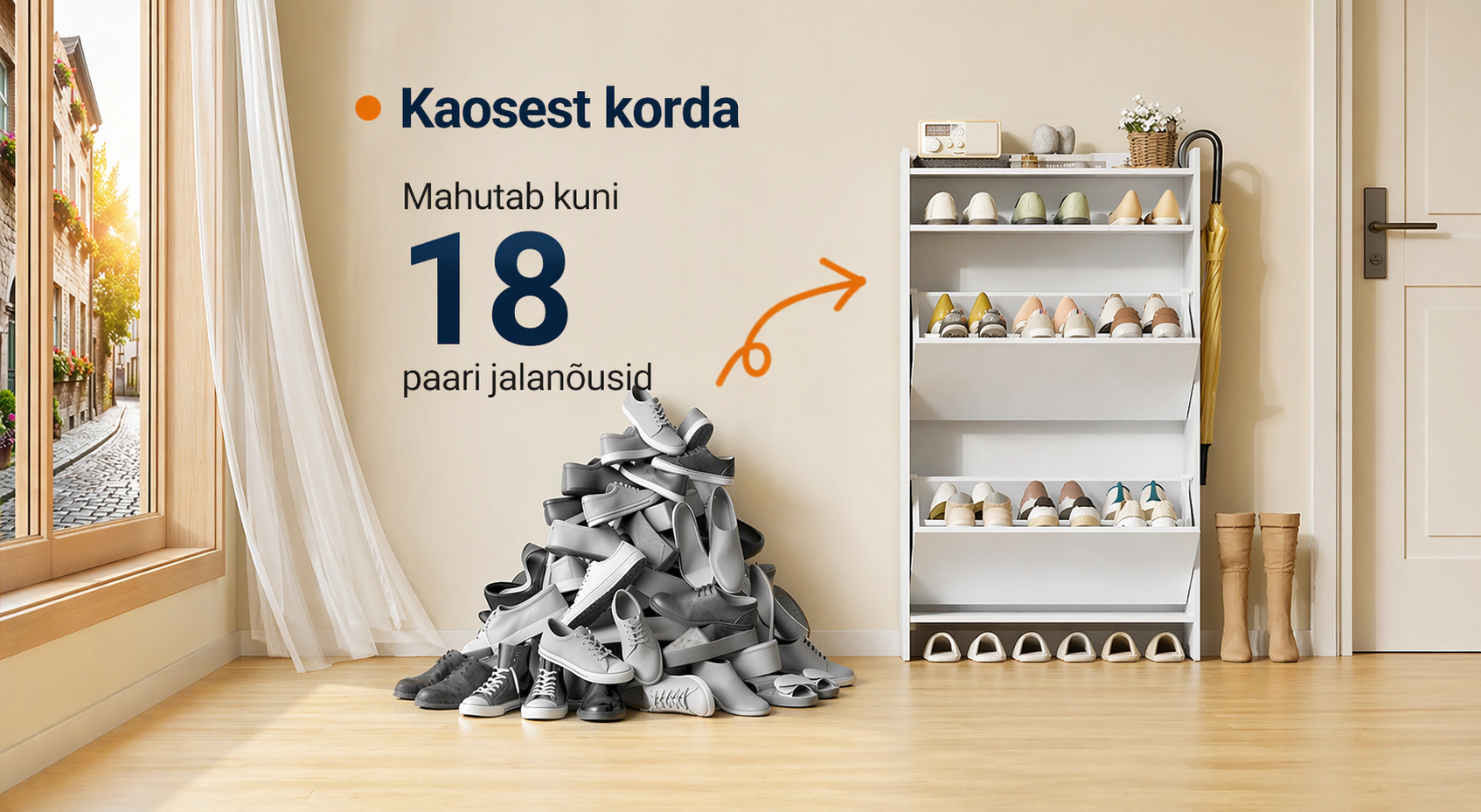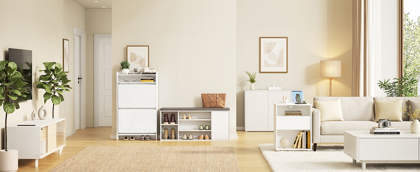Ruumisäästlik ja moodne: Vaid 24 cm sügavusega kingakapp vajab minimaalselt põrandapinda, kasutab ära vertikaalset ruumi ning sobib ideaalselt kitsastesse koridoridesse ja sissepääsudesse. Lihtne valge viimistlus loob moodsa ilme ja sulandub sujuvalt erinevatesse sisekujundusstiilidesse.