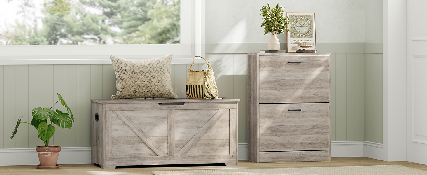 SUUR KANDEVÕIME Pind talub kuni 136 kg ja sahtel kuni 60 kg, nii et saate mugavalt pingil istuda ja jalanõusid vahetada, hoides samal ajal pingi peidetud sahtlis palju esemeid.