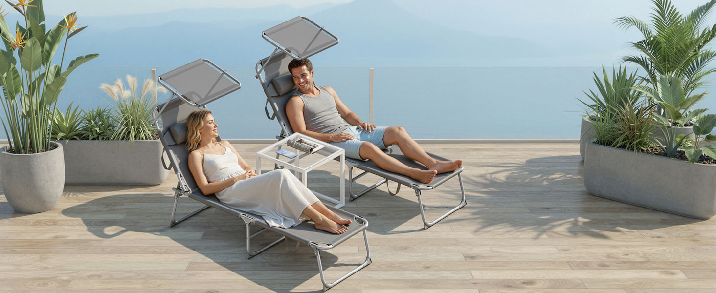 Reguleeritav seljatugi ja peatugi: Seljatuge saab reguleerida nelja asendisse ja see on varustatud eemaldatava, reguleeritava peatoega. Olenemata sellest, kas soovite päevitada või lugeda, leiate hõlpsalt oma ideaalse lõõgastusasendi.