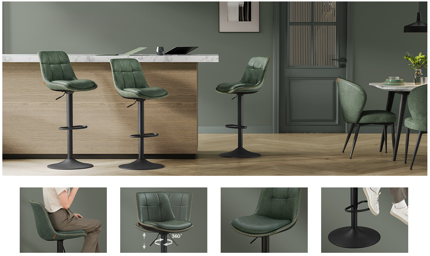 - [Lihtne puhastada] Kunstnahast pealispinda, samuti mattmusta tugivarda, jalatuge ja alust saab kergesti puhastada niiske lapiga. See tähendab, et köögitool jääb alati puhtaks.