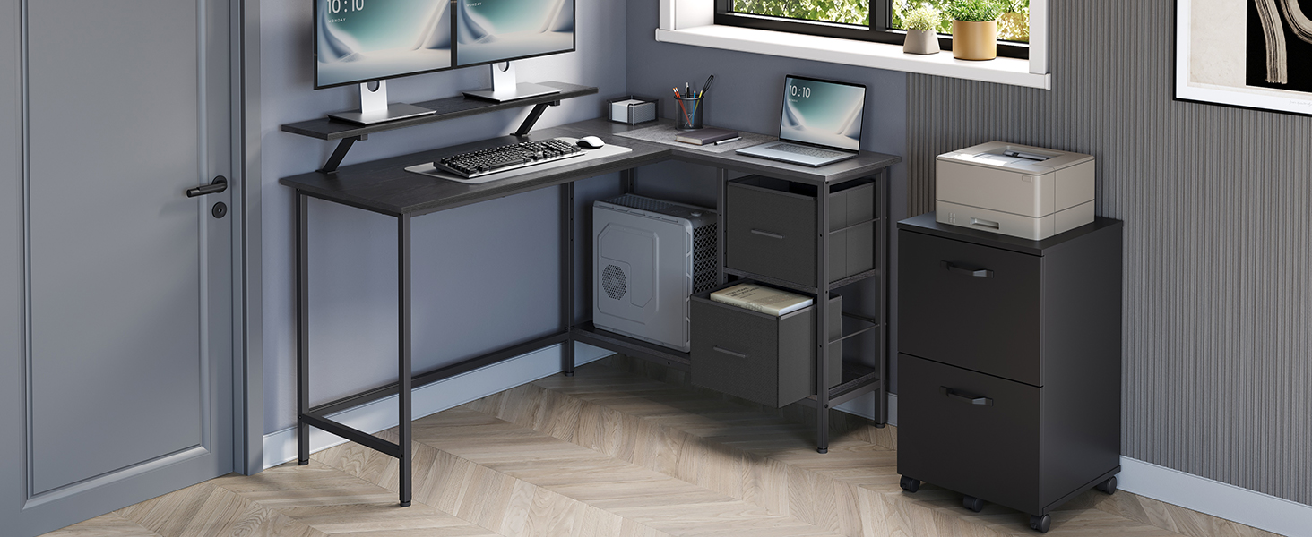 - 【PAINDLUS JA MITMEKÜLGNE】 Selle L-kujulise laua sahtlid saate paigaldada vastavalt oma vajadustele vasakule või paremale küljele, mistõttu see laud sobib ideaalselt teie töö-, magamistoa- või elutoa igasse nurka.