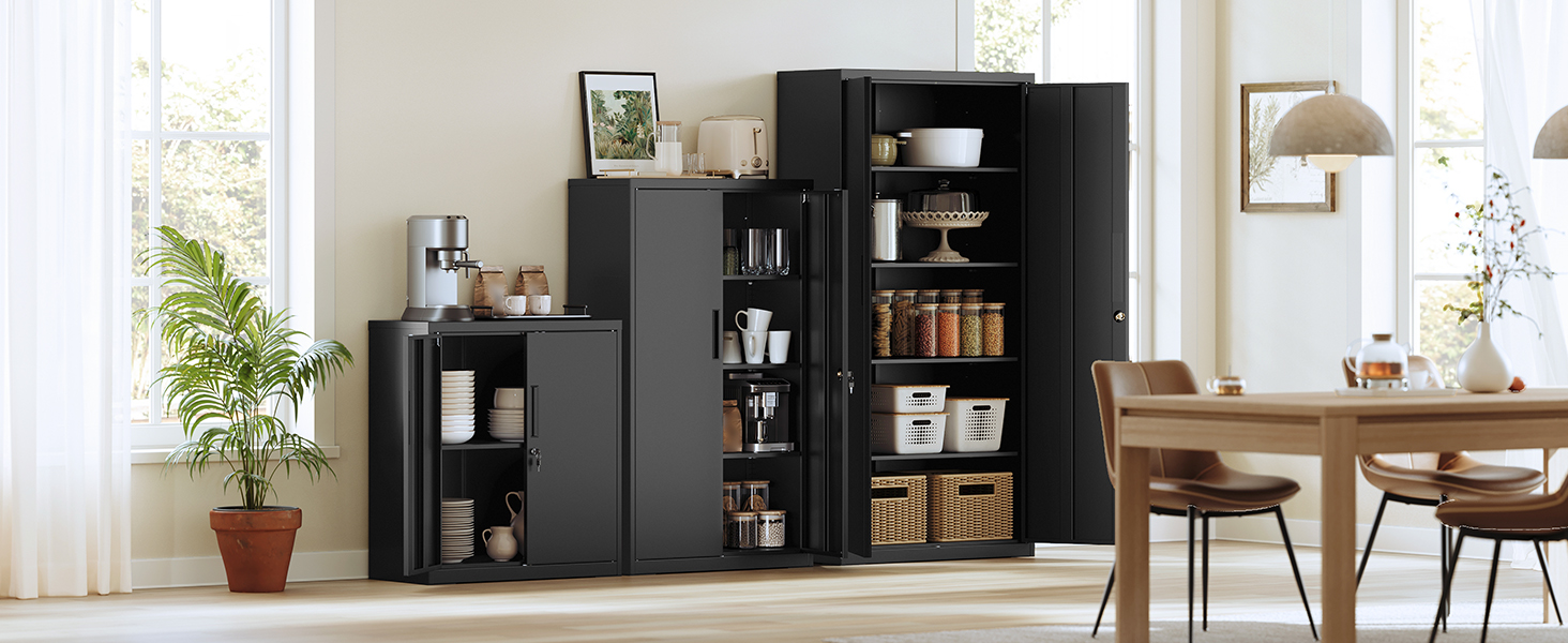 Mitmekülgne kasutus: olgu see siis tööriistade ja spordivarustuse hoiuruumis või dokumentide ja kontoritarvete kabinetis – see metallkapp kohandub teie vajadustega. Kõik püsib korralikult hoiul ja kergesti ligipääsetav.