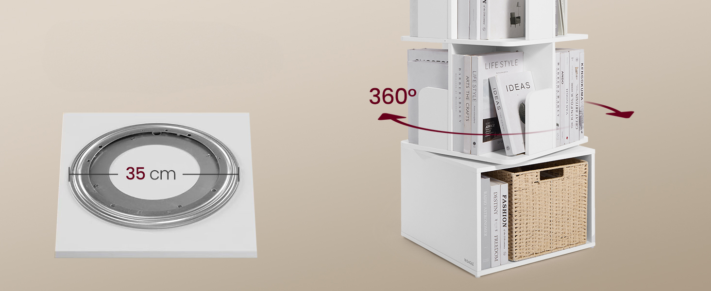 360° pööratav: Seda hoiuriiulit saab 360° pöörata, nii et pääsete oma esemetele hõlpsalt ligi igast suunast – kõik on alati käeulatuses.
