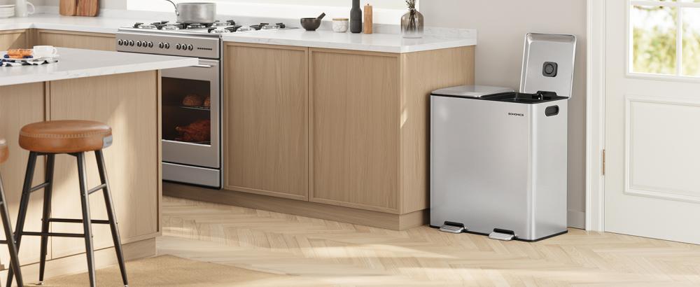 - Lihtne jäätmete sorteerimine ja tühjendamine: Kaks 30-liitrist sisemist prügikasti hõlbustavad jäätmete sorteerimist. Mõlemad prügikastid on eemaldatavad ja kergesti puhastatavad.