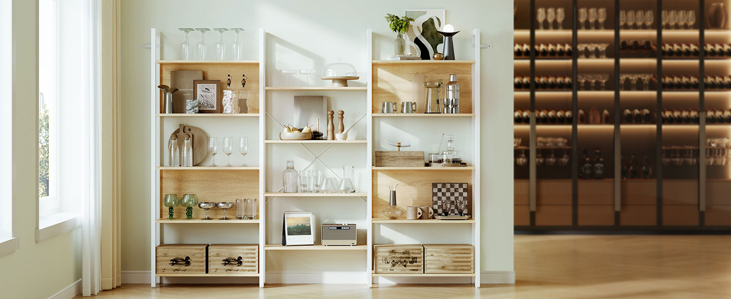 Tugev ja vastupidav Tugev teras ja kvaliteetne puitlaastplaat tagavad kindla konstruktsiooni, mida tugevdavad tagaküljel olevad X-kujulised tugipostid. See eraldiseisev riiul talub kuni 140 kg koormust (kuni 10 kg riiuli kohta).