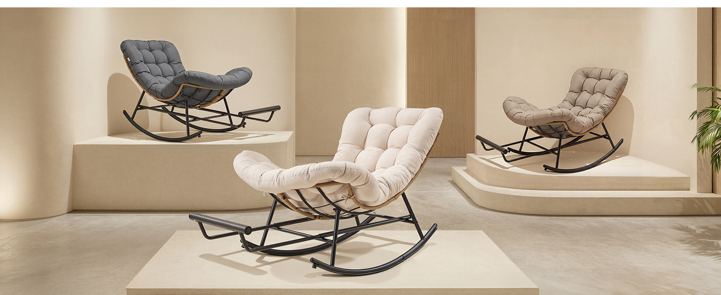 Ergonoomiline ja survet leevendav: Hästi polsterdatud kiiktool on ergonoomilise kujuga ja kohandub ideaalselt keha kontuuridega, leevendades märgatavalt survet. Õrn kiikumine tagab tasakaalustatud mugavuse – ilma ümberminekutundeta.