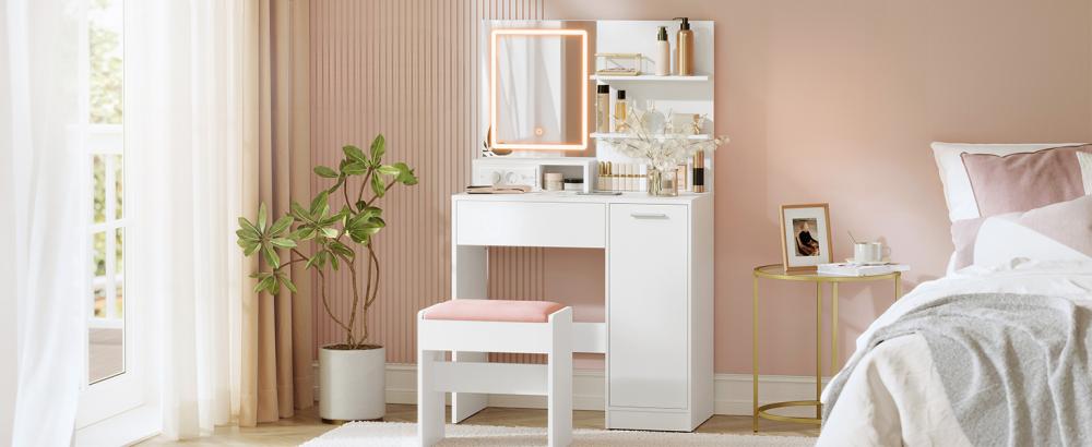 - Palju ruumi: Parfüümid ja kreemid kahel riiulil, juuksesirgendaja sahtlis, meigieemaldaja alumises kapis – kõigil sinu ilutoodetel on oma kindel koht.