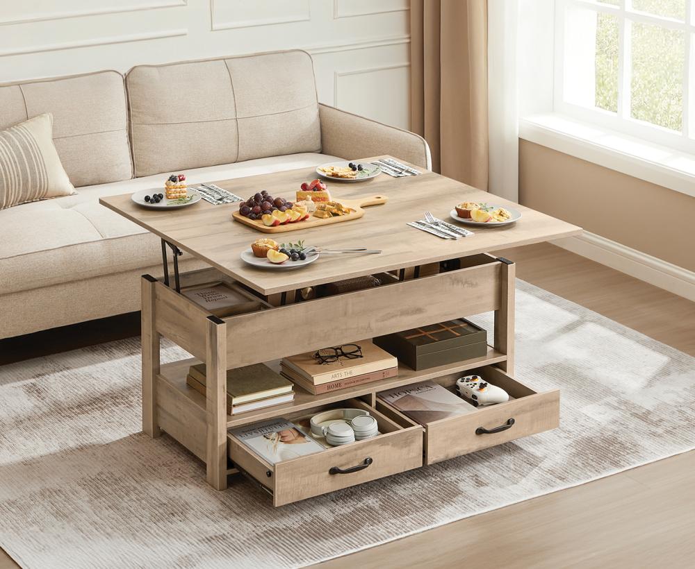 Vasagle kõrguse reguleeritav kohvilaud sahtlite ja riiulitega, helepruun