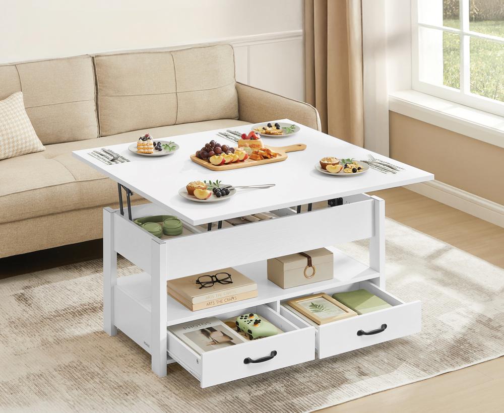 Vasagle kõrguse reguleeritav kohvilaud sahtlite ja riiulitega, valge
